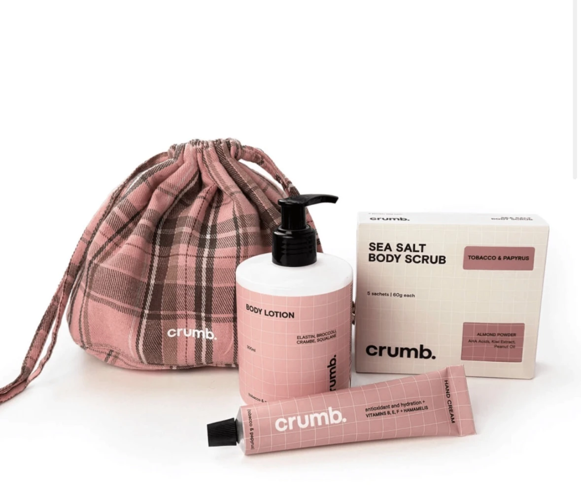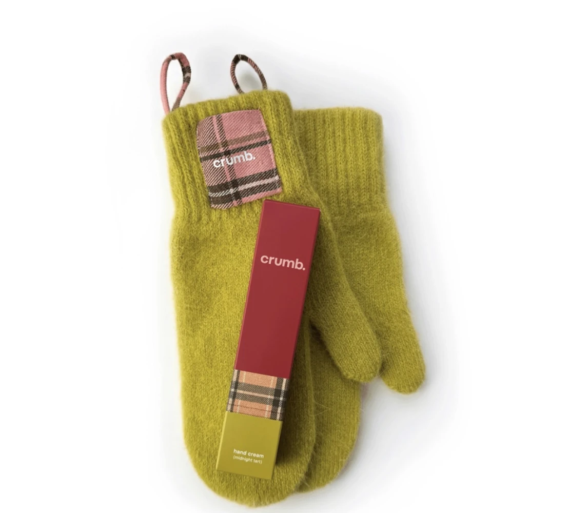 Подарунок, що зігріває. Обирай набір з теплими рукавичками з ангори й поживним кремом для рук з ароматом горішків, карамелі, кедра, молочного шоколаду й ванілі, сет bodycare-засобів з нотами тютюну, папірусу, кориці й амбри чи будь-який інший із продуктів Crumb — кожен з них огортає турботою і покращує настрій яскравим ароматом.