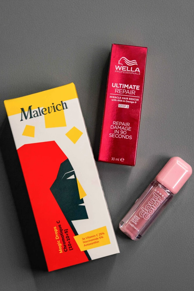 Цього разу я обрала у просторі три засоби: два з них — мої давні улюбленці (сироватка для волосся Wella і рідкі рум’яна Lamel, про які далі розповім детальніше), а один — новинка, про яку вже давно чула від колег. Саме так воно і працює, коли простір справді надихає на красу: заходиш за чимось конкретним, а виходиш — ще й із чимось новим, що миттєво стає частиною твоєї рутини.