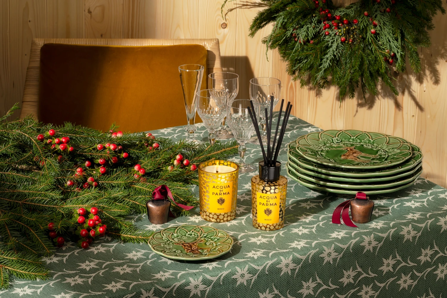Святкова колекція бренду Acqua di Parma — як подорож у Доломітові Альпи з вершиною Антелао як символом колекції й настрою. Над візуальною концепцією працювала архітекторка та дизайнерка Крістіна Челестіно, яка переосмислила альпійські ремісничі техніки — карбування і брашовані та кракелюрні фактури — у сучасному ключі, зробивши ставку на кераміку, тактильність і атмосферу затишного шале. До колекції увійшли культові святкові аромати: Bosco з нотами ялиці, евкаліпта і гвоздики, що пахне зимовим лісом, Panettone з ароматом традиційної італійської випічки із цитрусами та ваніллю, а також новинка Torrone — композиція з фісташкою, кунжутом і кремовою нугою. Свічки та дифузори представлені в ефектних фарфорових предметах з ручною текстурою — справжні подарунки-артоб’єкти для дому з настроєм спокійної розкоші та відчуттям тепла, яким хочеться ділитися.