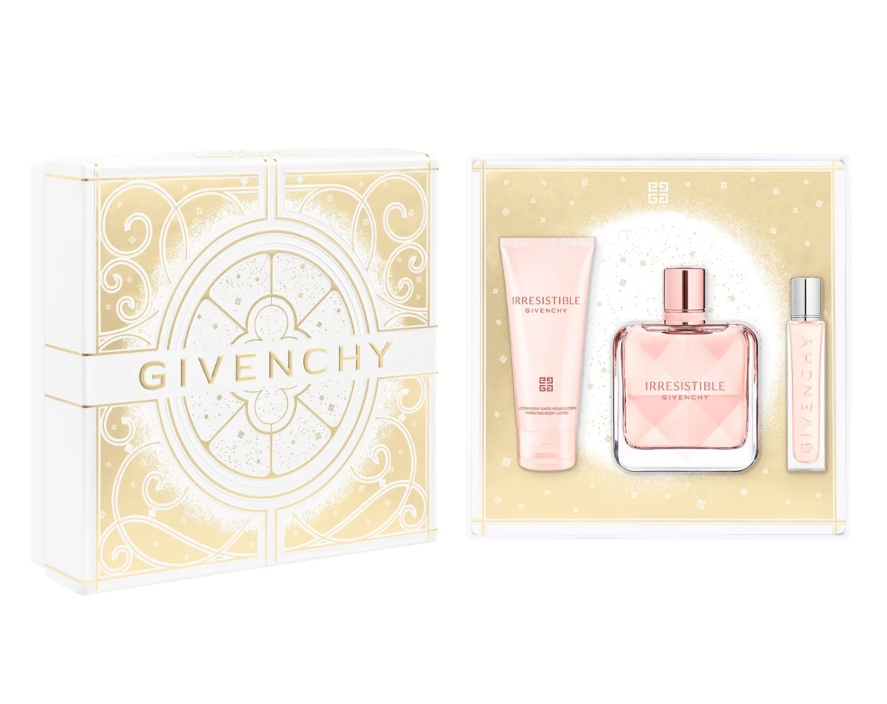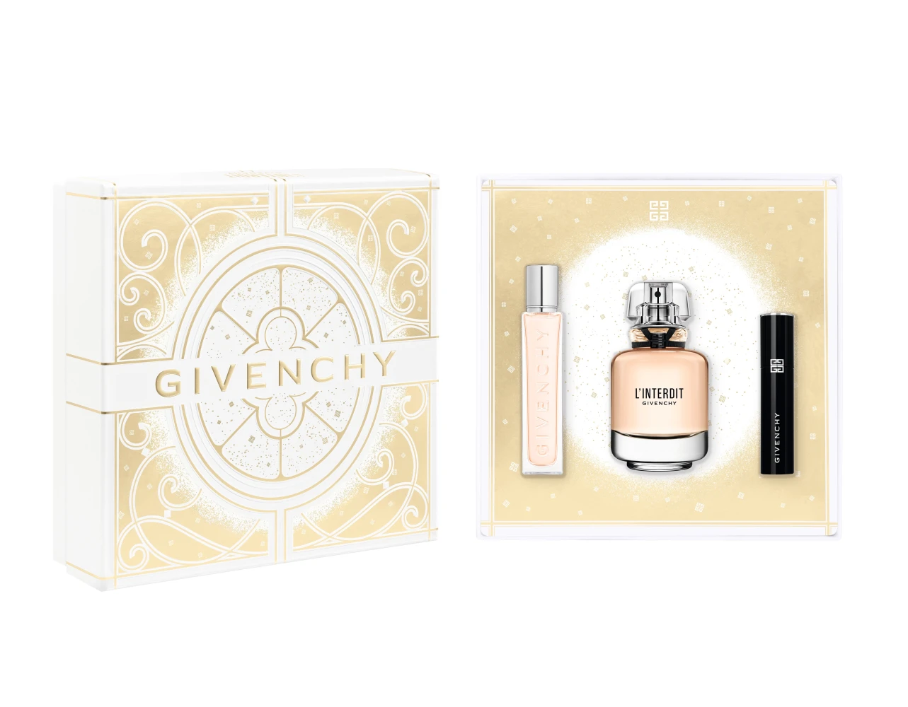 Різдвяні набори Givenchy у розкішних золотих пакуваннях — це подарунки, що створюють святковий настрій. Серед них ти знайдеш знакові аромати й засоби бренду — білоквітковий L’Interdit, деревинно-пряний L’Interdit Rouge, Irresistible Givenchy з нотами груші, троянди й кедра, набір для чоловіків з парфумами і доглядовими продуктами з лінії Gentleman, туш L’Interdit Couture Volume Mascara та інші бестселери, які варто мати у своїй колекції.