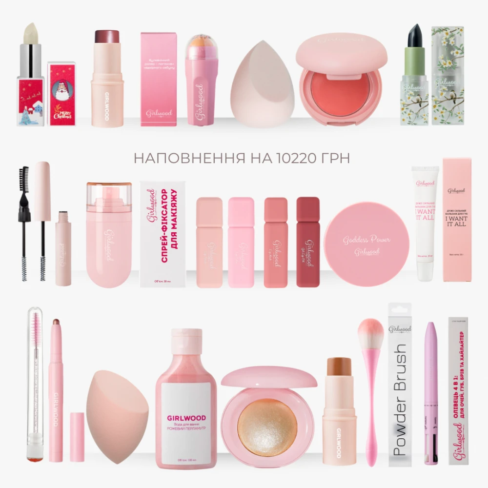 Адвент-календар із 24 комірками, beauty-бокси різного розміру і наповнення та сети засобів для губ і обличчя — у бренду Girlwood ти знайдеш класні набори з вайбом pink magic. Зверни увагу на нові пептидні блиски-бальзами для губ з ароматами і назвами коктейлів (звісно, наш фаворит — «Космополітан»!), сяйливі хайлайтери та ніжні румʼяна у стіках, з якими легко можна зробити no makeup makeup.
