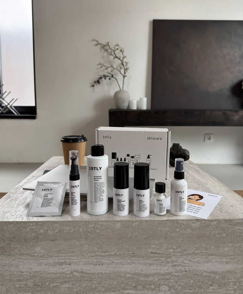 BEAUTY BOX від бренду 1STLY — це набір доглядових засобів із топовими продуктами 2025 року. До нього входять сироватка з PDRN, що забезпечує ефект омолодження без уколів і відновлення шкіри на клітинному рівні, тонер з пробіотиками, який відновлює баланс шкіри та надає їй природне сяйво, крем для обличчя та для зони навколо очей з ретиналем, що чинить потужну дію проти зморщок без подразнення шкірного покриву, і SOS-спрей — як «перша допомога» в bad skin day чи після косметологічної процедури. Ідеальний сет для тих, хто цінує сучасні дієві формули в skincare-засобах.