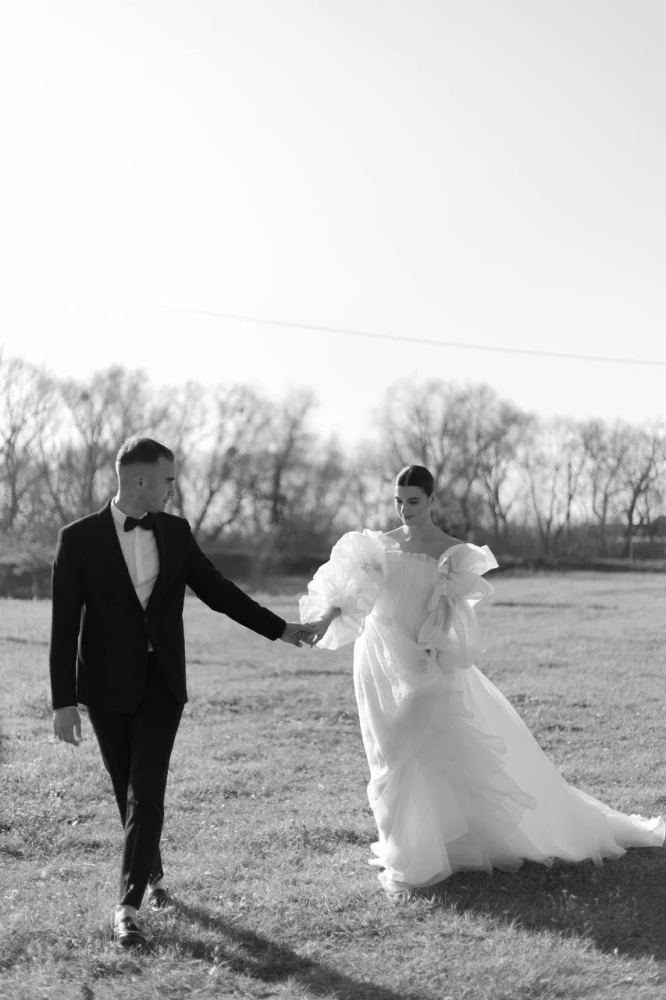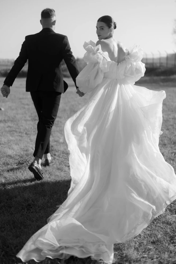 Перша наша героїня — інфлюенсерка Лєнточка. Камерний, затишний вайб, переосмислений ангар, що перетворився на справді казкову локацію, вишуканий образ нареченої, створений талановитою дівчиною, яка лише починала свій шлях у fashion-сфері, — усе це зробило весілля нашої героїні унікальним. Її історія нагадує: весілля — не про ідеальність, а про справжність, тепло і підтримку близьких.