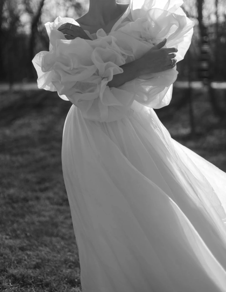 Для мене було важливо не втратити себе в цьому образі. Я остерігалася глянцевих зачісок з локонами, надто щільного макіяжу і блискучих суконь — усе це здавалося мені чужим. Зрештою я знайшла образ, який дуже відгукнувся. У мене добре працює інтуїція — і саме вона привела мене до кравчині зі Львова. Вона мала лише 200 підписників, але її роботи були настільки сильними, що я одразу відчула: тільки вона зможе втілити саме те, що я уявляла.