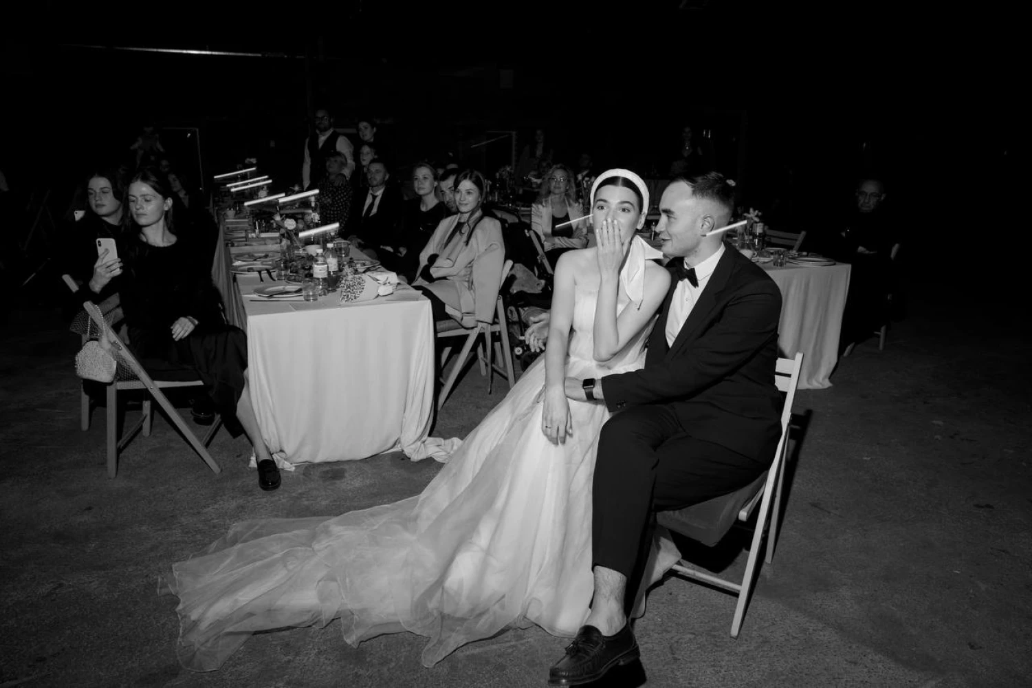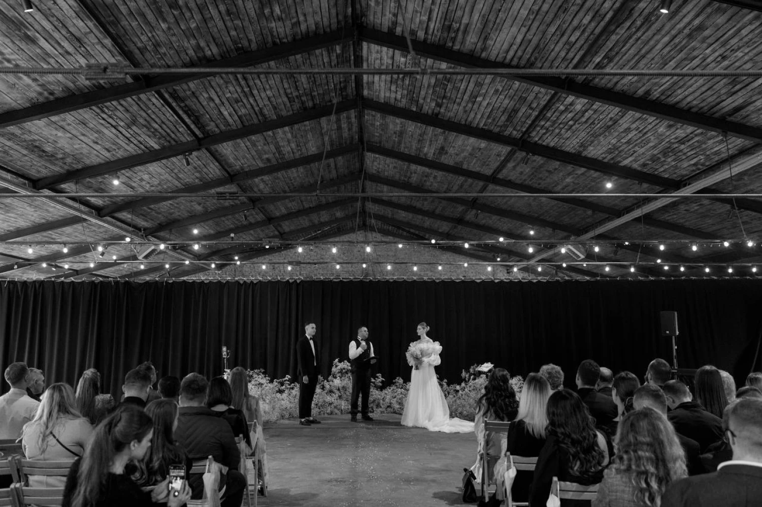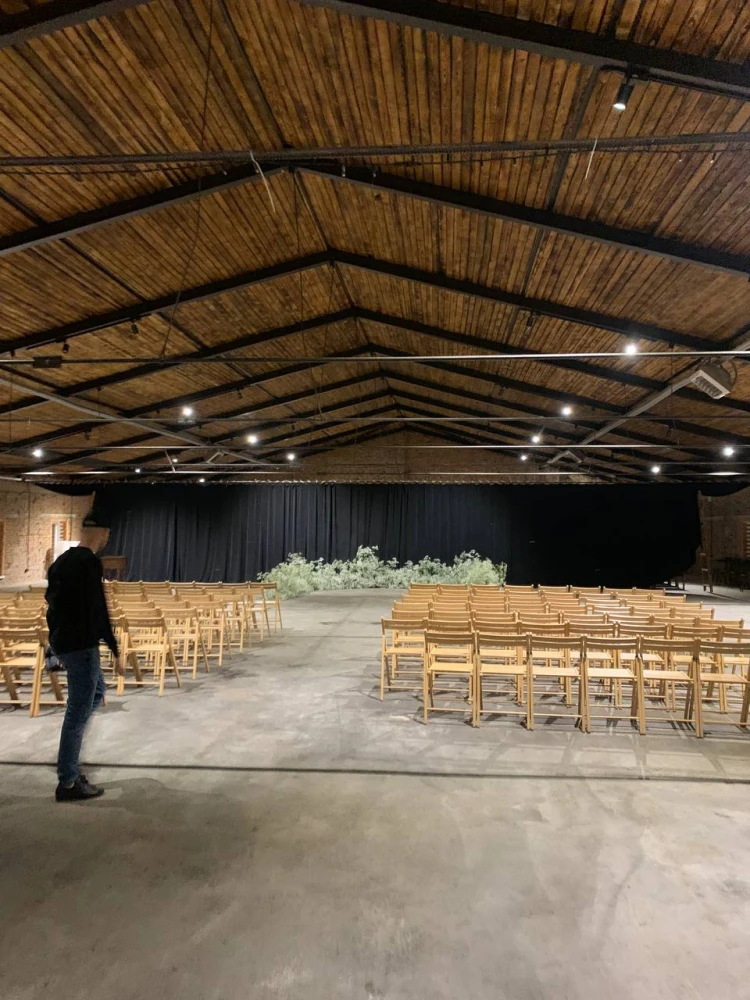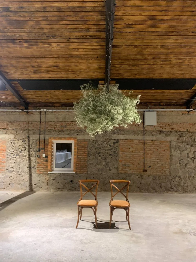 Усередині було багато зайвих меблів, шаф і металевих конструкцій. Ми сховали все це за великою ширмою, яка зрештою стала нашою фотозоною та місцем для вінчання. Було зроблено чимало, щоб перетворити цей простір на щось магічне для наших гостей — але це було того варте.