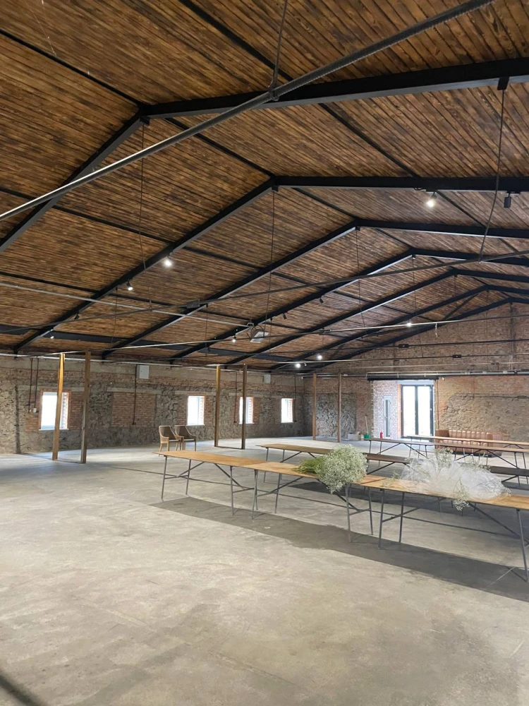 До речі, раніше цей ангар використовувався тільки для промислових заходів — і наше весілля стало першим святом такого формату на цій локації.