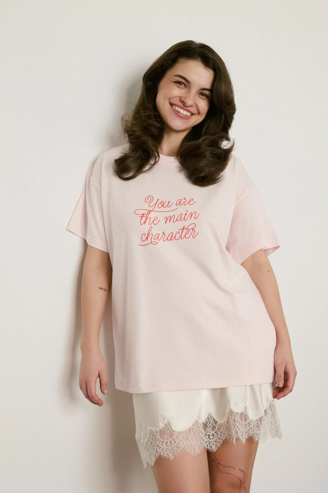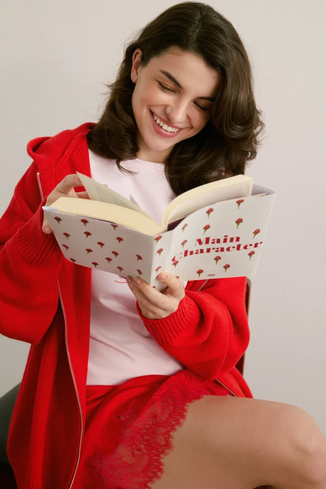 До колекції Main Character увійшли футболки та лонгсліви з написом MAIN CHARACTER та вирізом у формі серця на спині, мінісукня з принтом троянд, а також червона сатинова максісукня та мініспідниця з мереживом — акцентні речі, створені для моментів, коли жінка хоче бути максимально помітною.