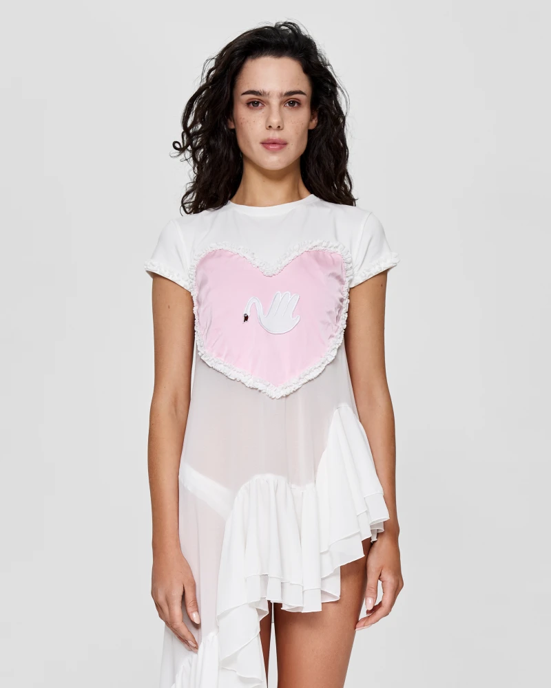 До Swan in Heart увійшли справжні предмети мистецтва: топи з лебедем, танга у двох варіаціях — з рюшами та аплікаціями у формі серця, стрінги з лебедем спереду та серцем ззаду, кофти, які стікають хвилястими воланами, а також боді, лонгсліви та штани з аплікацією-серцем і лебедем.