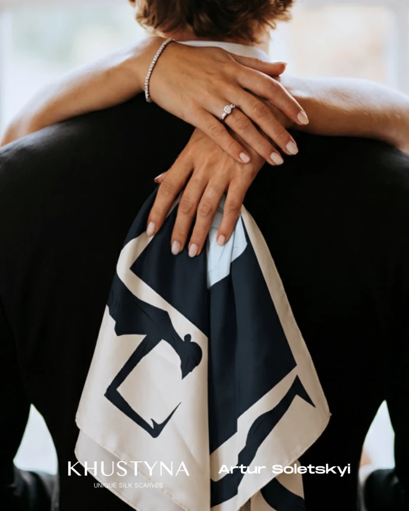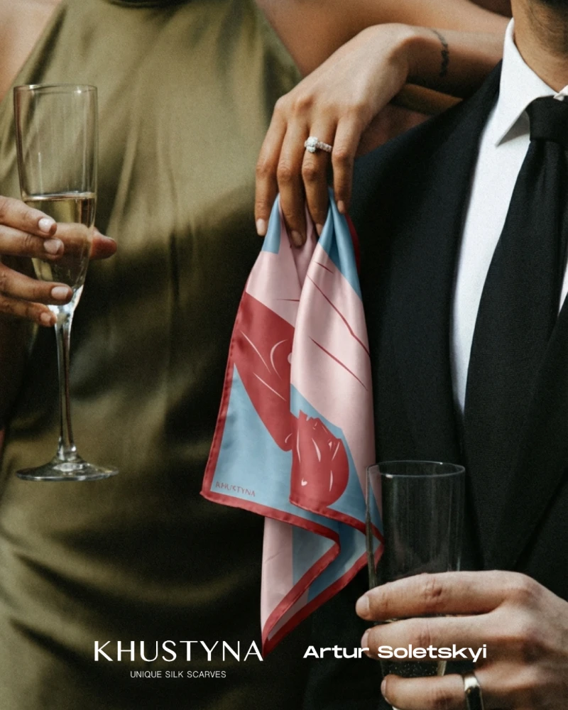 «Ми хотіли створити картини на шовку, які хочеться розглядати. Це як у стосунках: спочатку ти бачиш загальну картину, а потім починаєш розрізняти деталі, рухи, погляди та дрібні дотики, які й формують ваш спільний світ», — ділиться своїм задумом команда бренду KHUSTYNA.