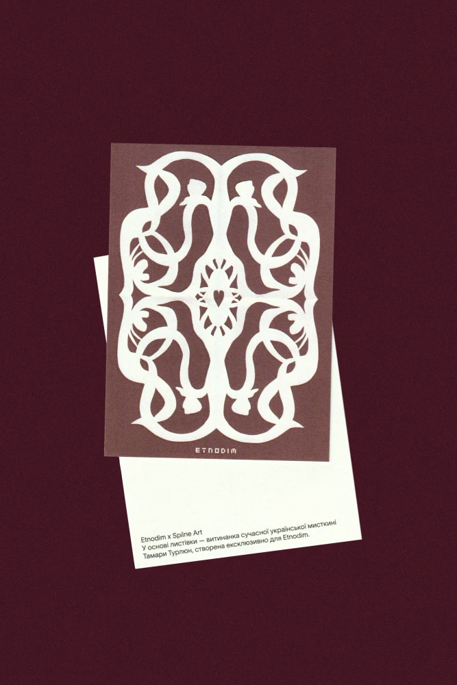 Отримати листівку-витинанку Etnodim x Тамара Турлюн чи надіслати її коханій людині можна онлайн під час оформлення замовлення на сайті бренду чи офлайн у київському та львівському шоурумах Etnodim у період з 9 по 15 лютого. Листівку можна підписати, перетворивши її на особливий жест уваги до близької людини.