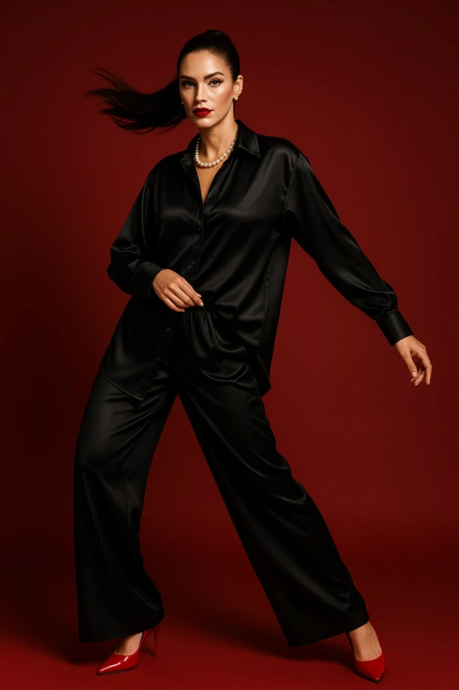 «Шепіт» — це одяг, який не вимагає ролей. Чорний колір у прочитанні бренду звучить м’яко й глибоко, стаючи символом впевненості, спокою та внутрішньої опори. До лінійки увійшли топ, шорти, штани та сорочки — лаконічні, продумані силуети, що легко поєднуються між собою й створюють відчуття цілісності. М’який шовк приємно відчувається на тілі, а сам одяг створює той самий ефект «нічого зайвого» — коли комфорт і елегантність існують разом. В одязі з цієї колекції легко можна зустріти Новий рік: без підборів і жорстких суконь, розслаблено, з келихом вина й відчуттям, що свято — не назовні, а всередині.