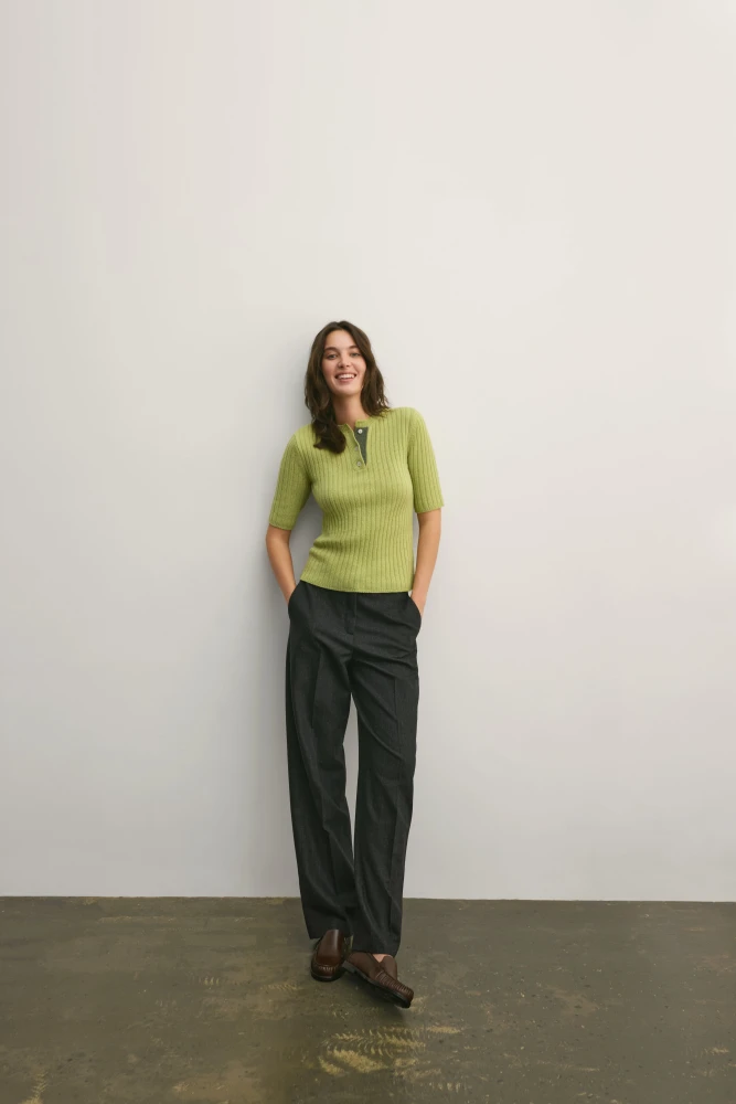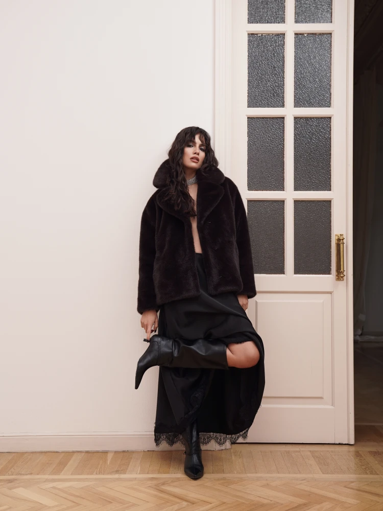 Колекція складається з двох частин — Cozy but Chic та Chic Basics. Лінія Cozy but Chic покликана довести: теплі речі можуть бути витонченими. М’які трикотажні костюми з вовни ягня та віскози, делікатні поло й шуба з екохутра з виразною, але ніжною фактурою легко інтегруються в повсякденний гардероб, додаючи образам шарму, м’якості та відчуття затишку.