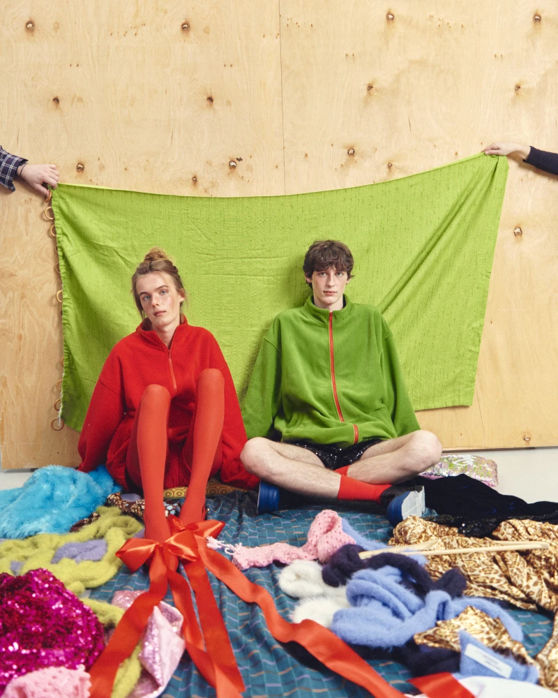 Ідея колекції виростає зі знайомого всім стану грудневої метушні, коли у списку покупок опиняється усе й одразу — навіть те, що, на перший погляд, не мало б поєднуватися. Цей контраст і став основою Cozy Mess: у межах однієї лінійки взаємодіють теплий фліс, повітряне пір’я, шовк, прозорі тканини, паєтки, пухнасті аксесуари, теплий трикотаж та навіть чашка. Кампейн колекції продовжив цю ідею у візуальному форматі: герої з’являються серед побутового безладу — розкиданих речей, різних текстур та випадкових поєднань.