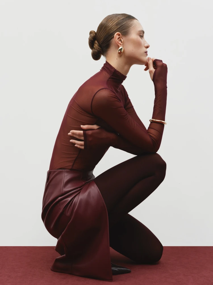 CHIC BASICS — для моментів, коли стриманість має блиск. Ця частина колекції пропонує нове прочитання базового гардероба, у якому лаконічні форми набувають чуттєвості. Напівпрозорий трикотаж, спідниці з нестандартними вирізами та екошкіра зберігають чітку геометрію, м’яко підкреслюють лінії тіла й водночас залишають простір для індивідуального стилю.
