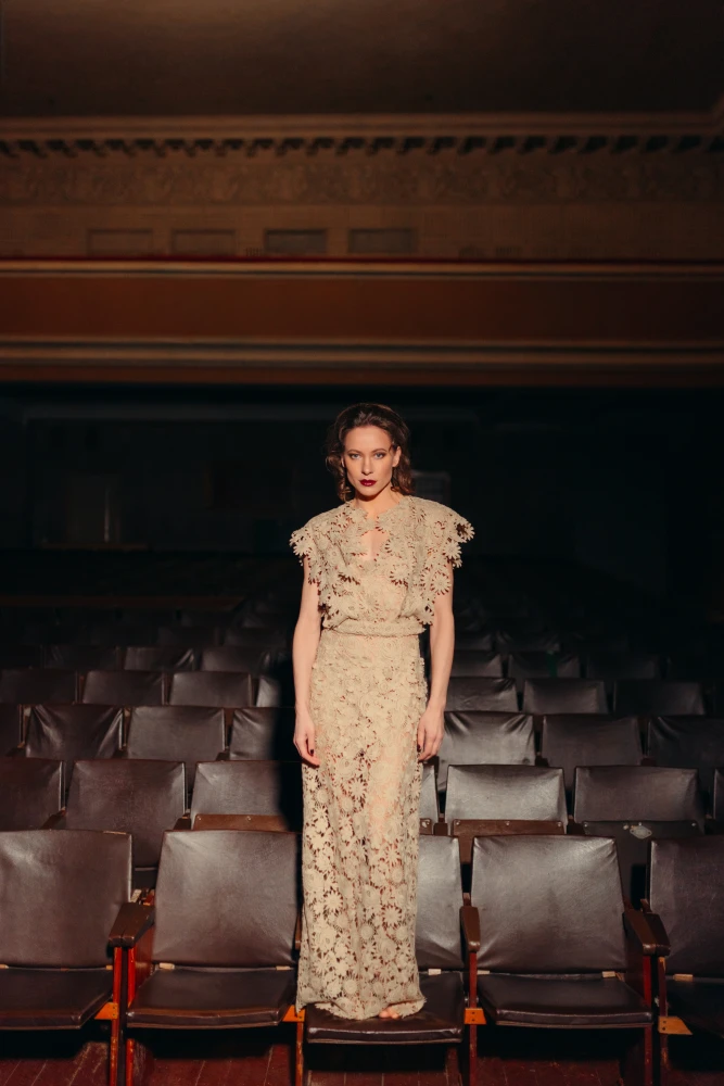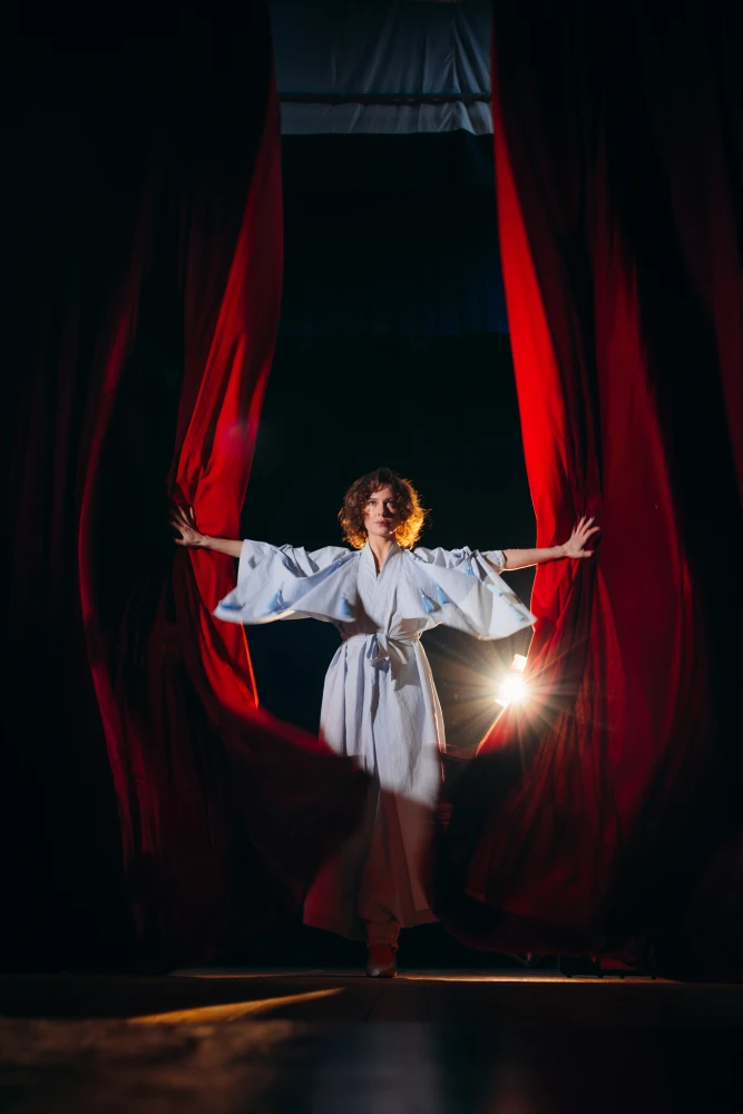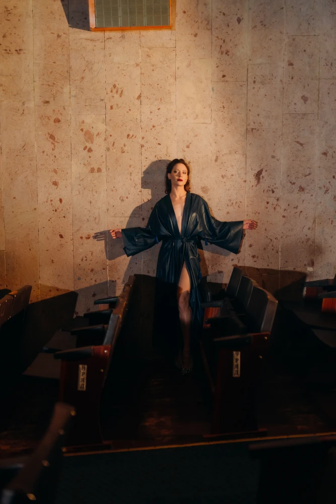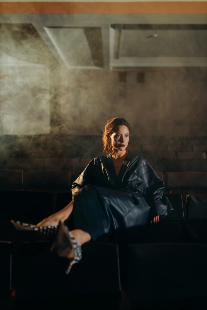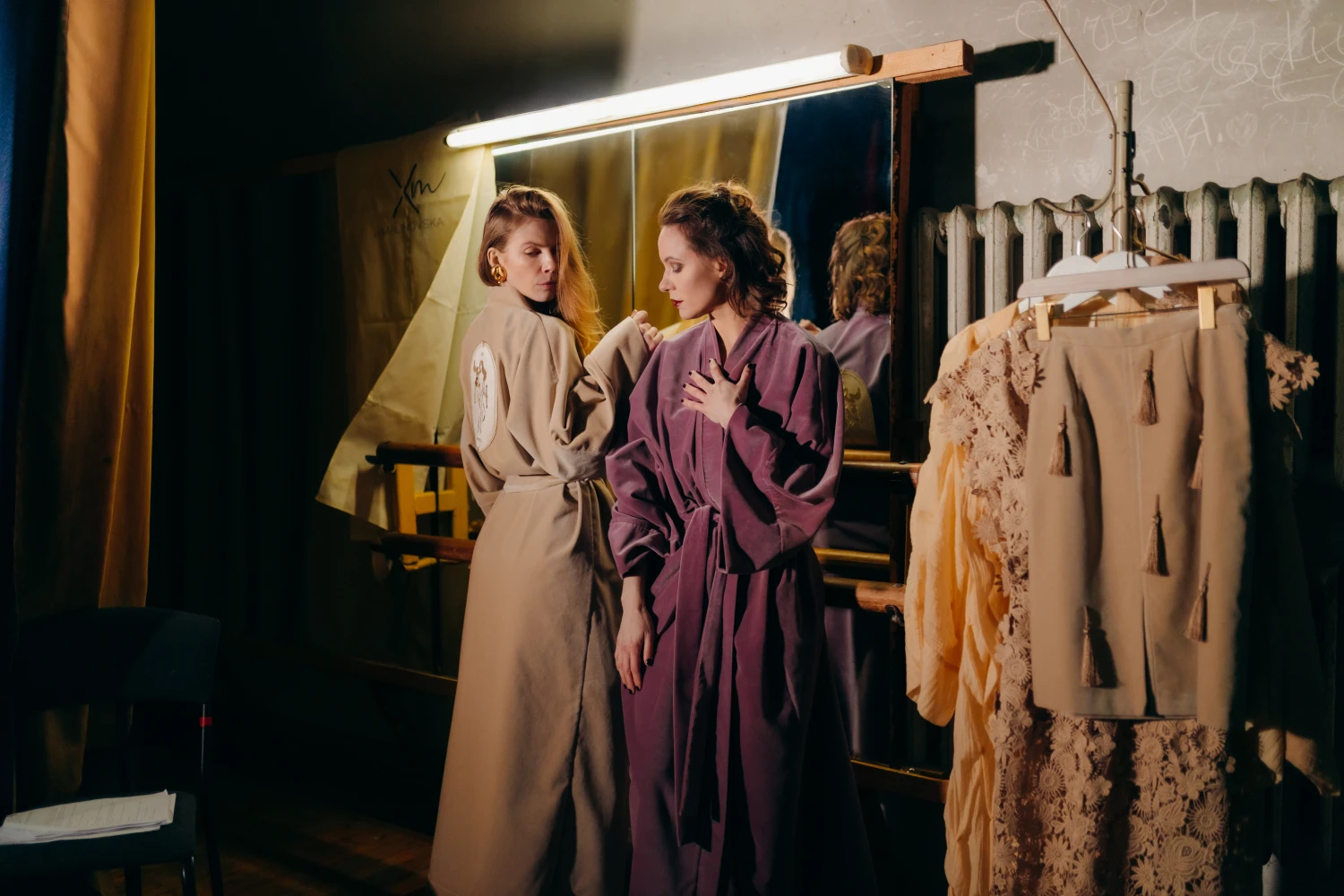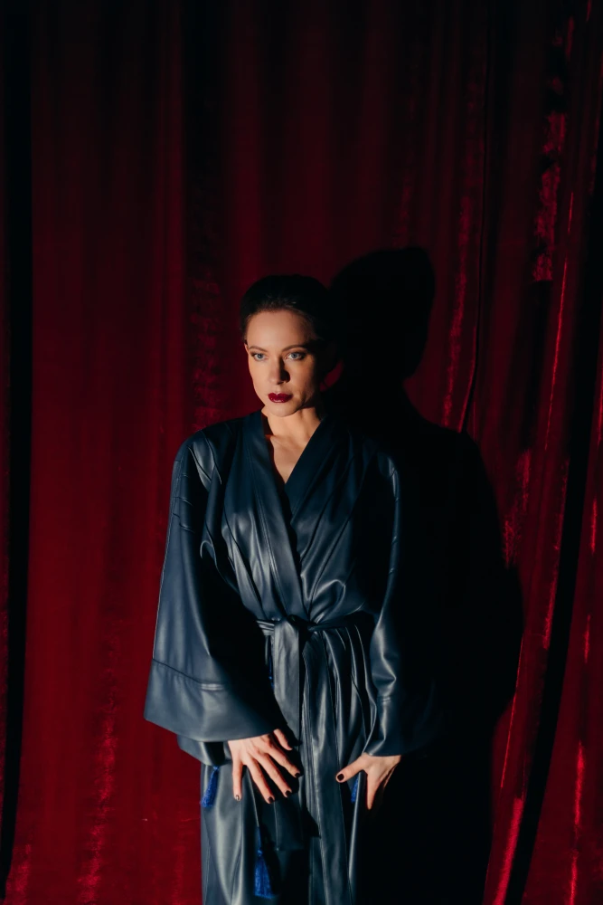 Цього сезону ключовими елементами дропу стали оксамит і китиці, які формують його візуальну мову. Оксамит — глибокий, фактурний матеріал, що асоціюється з театральною кулісою, важкими портьєрами та урочистістю. А китиці додають колекції руху, гри та витонченості. Вони прикрашають подоли спідниць і шкіряних тренчів, оживаючи при кожному кроці, немовби підхоплюючи аплодисменти глядачів. У дропі також представлені вільні, архітектурні силуети: фірмові оксамитові кімоно з вишивкою, повітряні моделі з театральними защіпками та тренчі-кімоно у відтінку ice blue. Квіткові мотиви в ажурних сукнях додають образу весняної легкості, створюючи баланс між драматизмом та чуттєвістю.