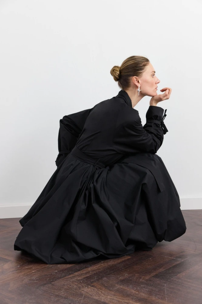 Після зими, яка була непростою і важкою для всіх, тілу хочеться легкості й подиху. Тіло бажає простору, можливості розправити плечі. Саме тому бренду свідомо закладає повітря між тілом і тканиною — у лініях балона, у відстовбурчений боках, у просторі силуету. Але кожен об’єм контрольований. Кожен балон має межу. Кожен рукав має пропорцію. Це продумана геометрія, яка дає жінці можливість вдихнути життя на повні легені. У Between the Lines бренд поєднав три рівні жіночності, які доповнюють один одний: архітектурну цілісність, повітряну пластику, природну м’якість.