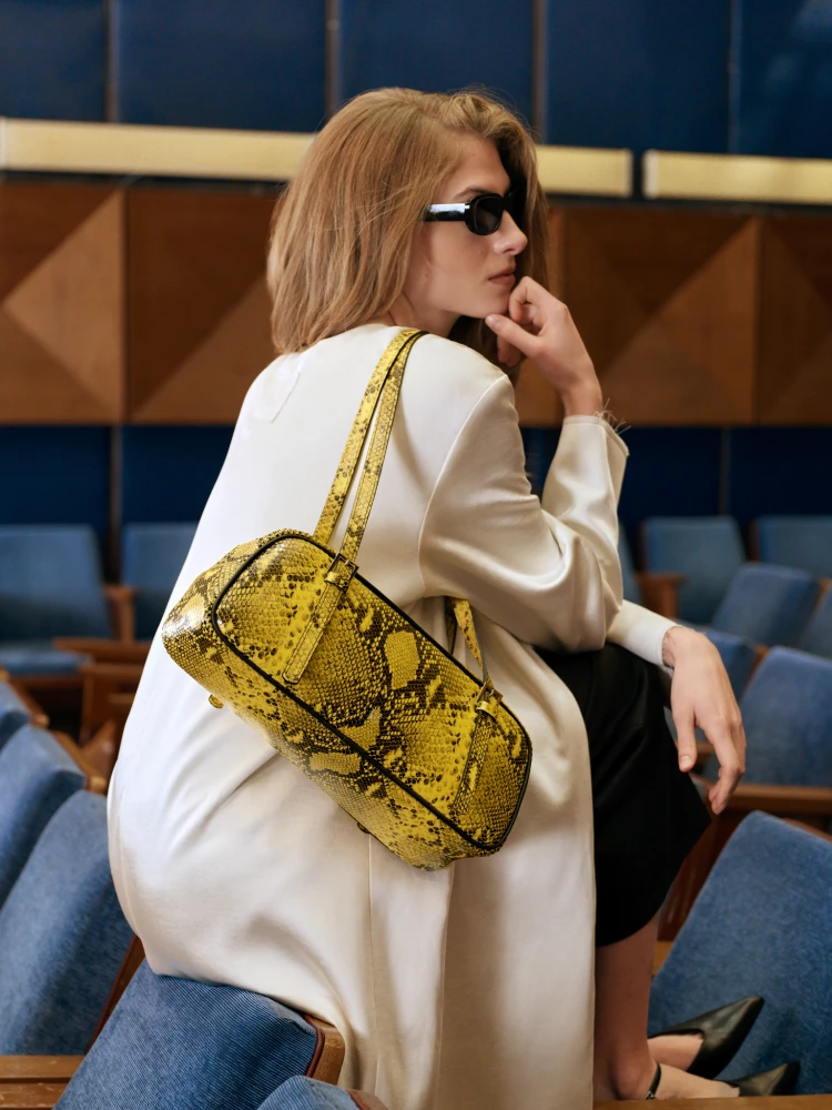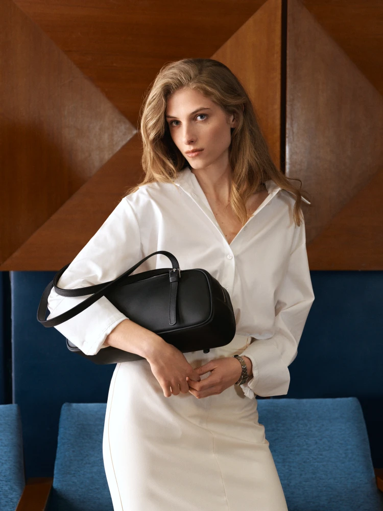 Так на перетині двох візуальних кодів — тогочасного стилю героїні та рефлексії бренду крізь сучасний контекст — формуються ключові риси лінійки. Стримана чорно-біла гама і точкові промовисті акценти: зміїна текстура, яку Керолін обирала у деталях, тиснення, глянцевий фініш і насичений rouge як перегук із чи не єдиним кольоровим елементом в її образах — червоною помадою. Нові моделі, презентовані у весняній колекції: Extra Hobo Bag, Bowling Bag, Lipstick Case, а також переосмислені Anny Bag та Baguette Flip.