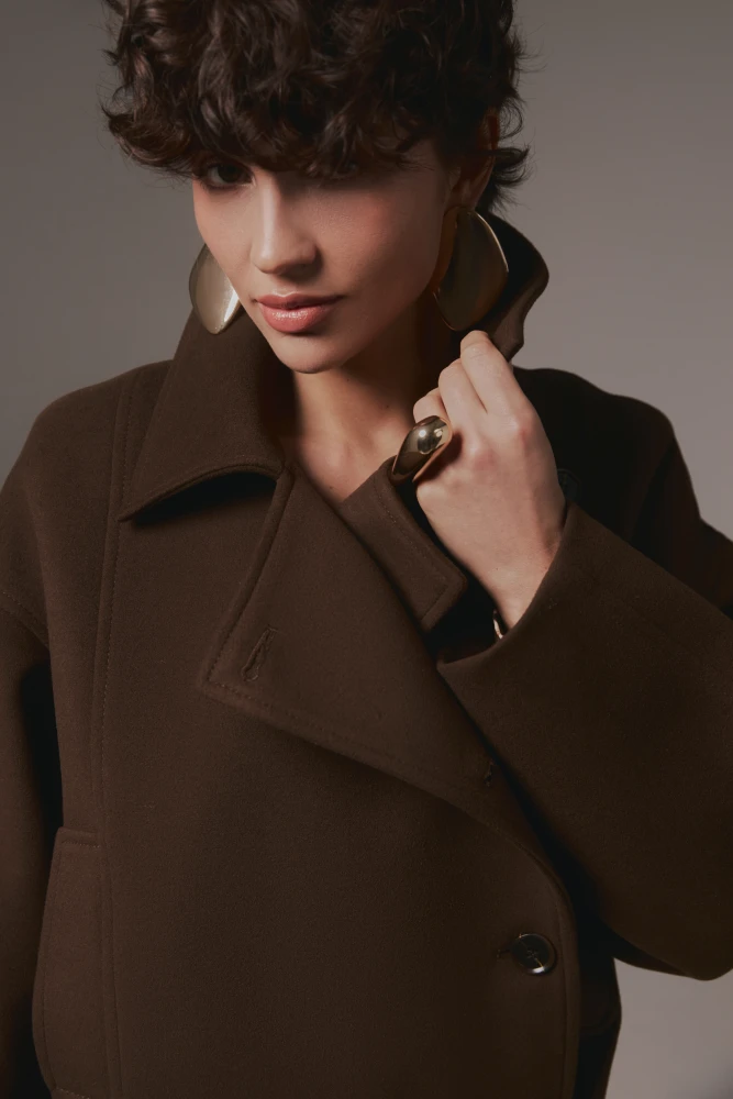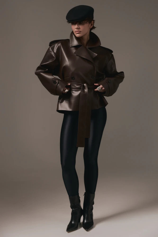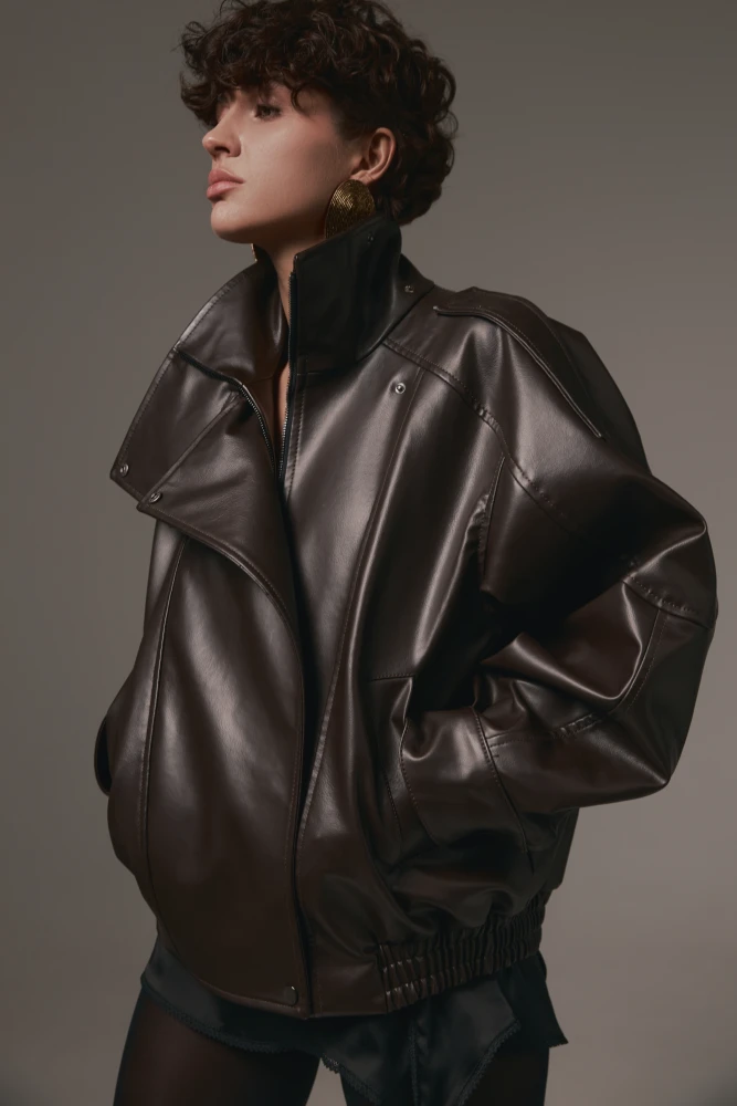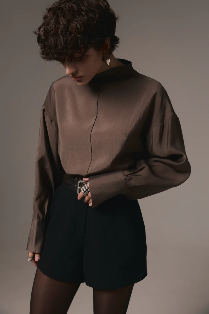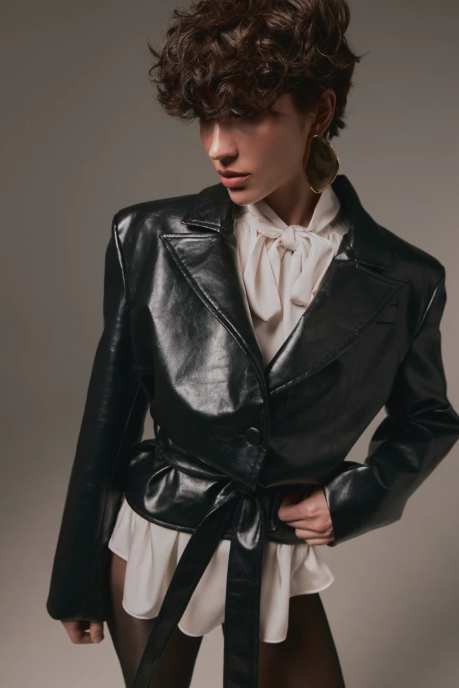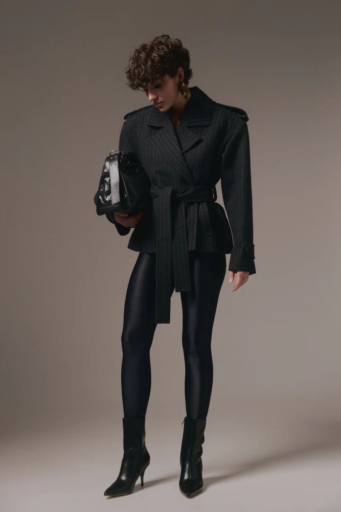 Колекція побудована навколо верхнього одягу та роботи з фактурами, що формують силует і задають настрій. STIMMA поєднує екошкіру, костюмну тканину та шерсть, створюючи виважену, лаконічну матеріальну палітру. Екошкіра додає образам характеру, костюмна тканина вибудовує чітку, архітектурну лінію, а шерсть привносить глибину та відчуття стабільності. Тонкі сорочки працюють як контрапункт — пом’якшують образи, додають руху й легкої чуттєвості, зберігаючи баланс між силою та жіночністю.