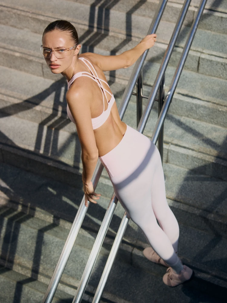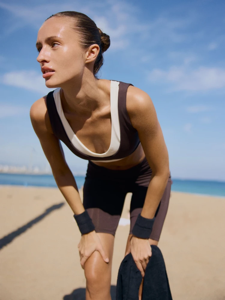 У першій лінійці 044 Sport Avenue представлені спортивні комплекти з легінсами та шортами, тенісні сукні та рашгарди — базові елементи, створені для тренувань, міських маршрутів і життя поза залом. Сети виконані у чорному, шоколадному, молочному та ніжно-рожевих відтінках, які легко інтегруються в повсякденний гардероб.