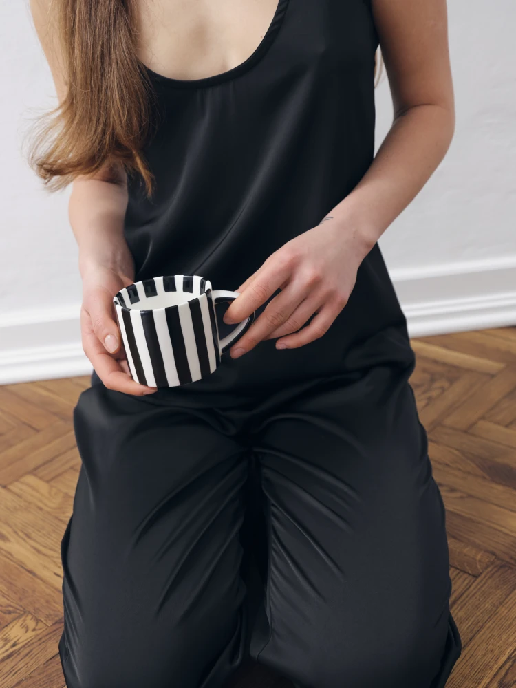 Перша колекція включає одяг для дому, халати, майки, шорти та піжами, аксесуари й посуд в характерній для бренду стриманій кольоровій гамі. Речі з колекції покликані доповнити наші повсякденні моменти, такі як неспішний ранок з кавою з красивої чашки, вечірній відпочинок за книгою у зручному халаті чи час для себе у ванній.