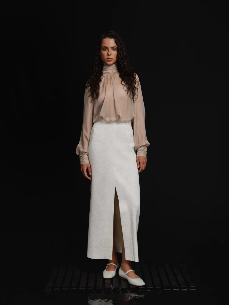 Linea говорить мовою архітектури: чіткі контури, гармонійні пропорції та динаміка крою поєднуються з емоційною жіночністю. Це баланс між строгістю лінії та м’якістю матеріалів, між сучасністю і класикою, між діловим образом і вечірньою елегантністю.