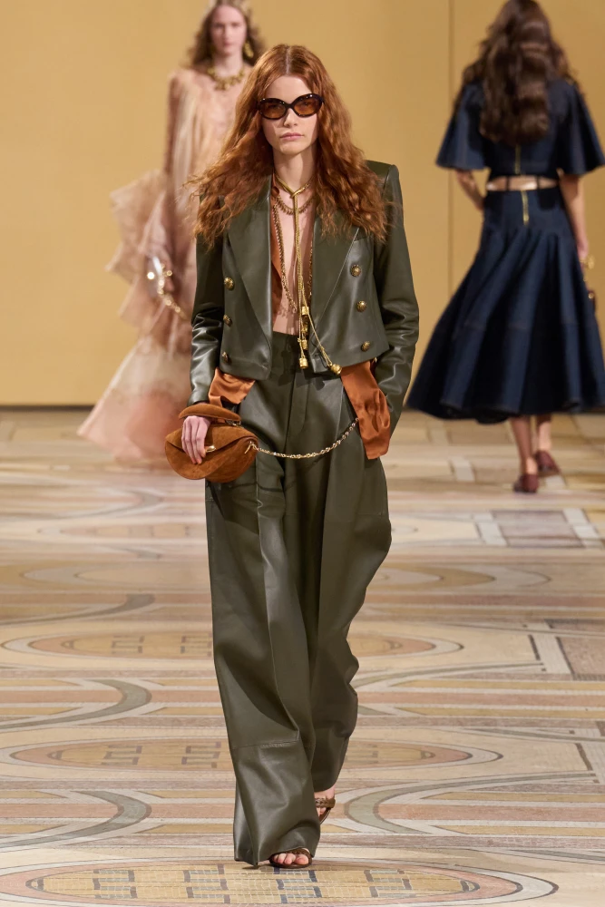 Такий образ Бібер укотре підкреслив актуальність шкіри в цьому сезоні. Ще на показах FW’25 багато дизайнерів продемонстрували хітовість цього матеріалу. Saint Laurent, Gabriela Hearst, Zimmermann та інші бренди представили модні total-луки з екошкіри, якими й задали головний тренд. А вірусна спідниця-олівець і байкерська куртка, які одягнула селебриті, — основа всіх найбільш стильних образів цієї осені.