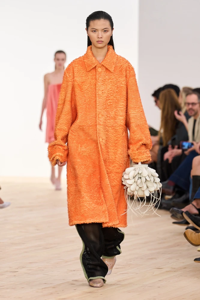 У нещодавній розмові зі стилісткою ми вже згадували про такий тон і про те, як правильно інтегрувати речі подібного забарвлення у гардероб. Сьогодні ж зупинимося на тому, як цей колір було представлено на модних показах SS’26 та як його вже носять streetstyle-інфлюенсерки. І розпочнемо з перегляду яскравих подіумних луків від провідних брендів.