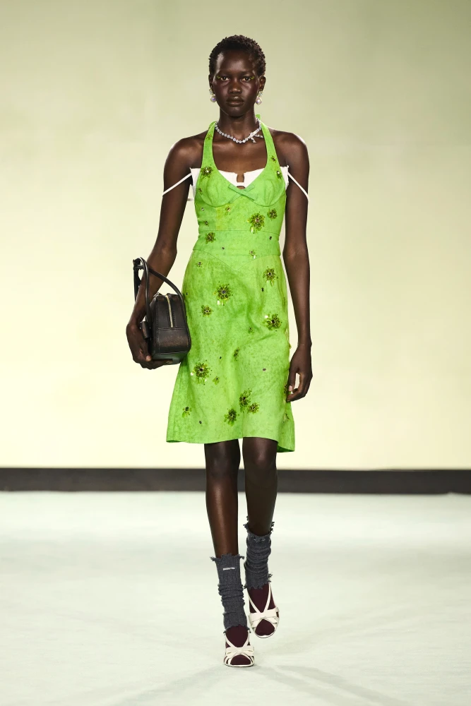 Салатовий — це, напевно, один з «найбільш весняних кольорів». Саме баланс на межі жовтого та зеленого спонукає нас розглядати салатові речі довше й обирати їх для акцентних деталей в образах. Звісно, така яскравість є і певним недоліком, адже не всім підійде настільки насичений тон, і не кожен наважиться носити його щодня. Але, судячи з актуальних показів цього сезону, потрібно, принаймні, спробувати зробити це.