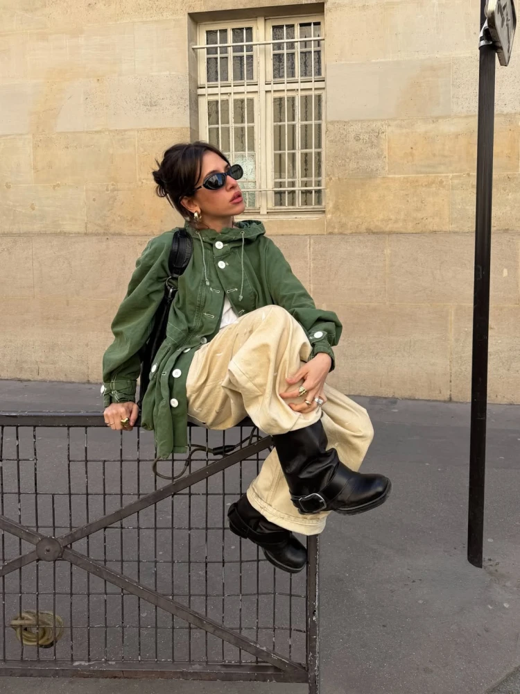 Останнім з наймодніших відтінків зеленої гами є хакі, хоча, варто зазначити, важко пригадати сезон, коли він би не був актуальним. Це справжня позачасова інвестиція, яку варто мати в шафі. До того ж, у зв’язку з його першочерговим мілітарним призначенням, цей тон є мегауніверсальним, а отже чудово виглядатиме на трендових штанах-карго, жакетах та сорочках з накладними кишенями.