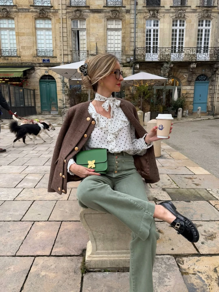На відміну від попереднього кольору, темно-зелений можна сміливо додати до набору базових. Переважно він з’являється у трендах ближче до осені, але дизайнери пропонують цьогоріч порушити цю традицію і насолоджуватися луками з темно-зеленим одягом уже зараз. Нагадаємо, що найкращий спосіб зробити це навесні-2026 — за допомогою темно-зеленої сумки.