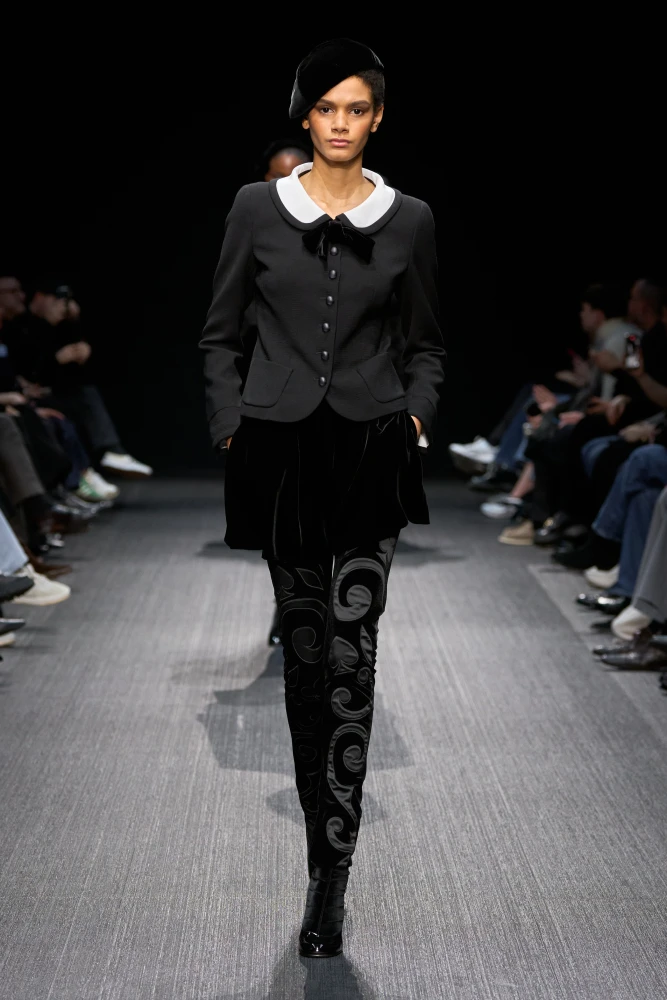 Зі свого боку дизайнери на подіумах презентували нову мегаактуальну модель легінсів — оксамитові. Цей елемент гардероба остаточно розриває зв’язок між лосинами та пілатесом і відкриває двері розкішним стилізаціям, де обтислий низ грає роль головної родзинки в образі.