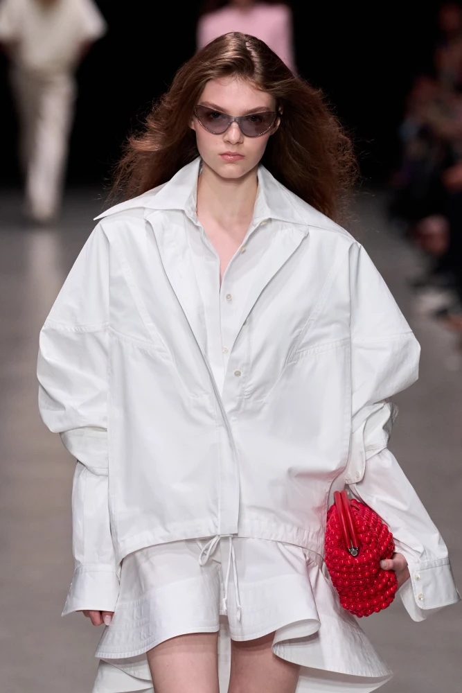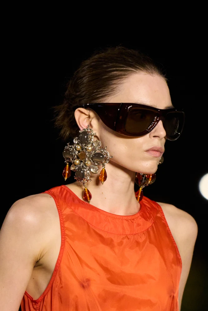 З попереднього тренду частково випливає і наступний. Оскільки гігантські окуляри — мегатренд, широкі дуги також наразі виглядають дуже стильно. Різні варіанти моделей із масивними оправами демонстрували дизайнери Saint Laurent, Elie Saab і Nina Ricci на подіумах SS’26, тож можеш сміливо орієнтуватися на них при виборі своєї ідеальної пари. Також не бійся експериментувати з кольорами, адже саме яскравий тон стане тим, що вирізнятиме тебе серед натовпу цієї весни.