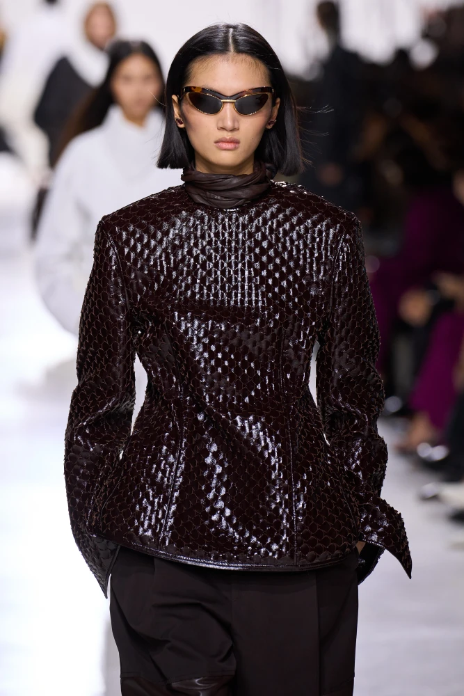 У 2026 році настав час замінити класичне «котяче око» на більш футуристичний варіант. Окуляри з вузькими овальними лінзами, дещо витягнутими до зовнішніх країв, — сучасна адаптація давно знайомої моделі. Дизайнери Bottega Veneta, Jean Paul Gaultier та інші зробили їх головним акцентом своїх Ready to wear лінійок, і тепер модниці активно наслідують цей прийом. Така форма додає образу гостроти й виразності, навіть якщо решта аутфіту максимально базова.
