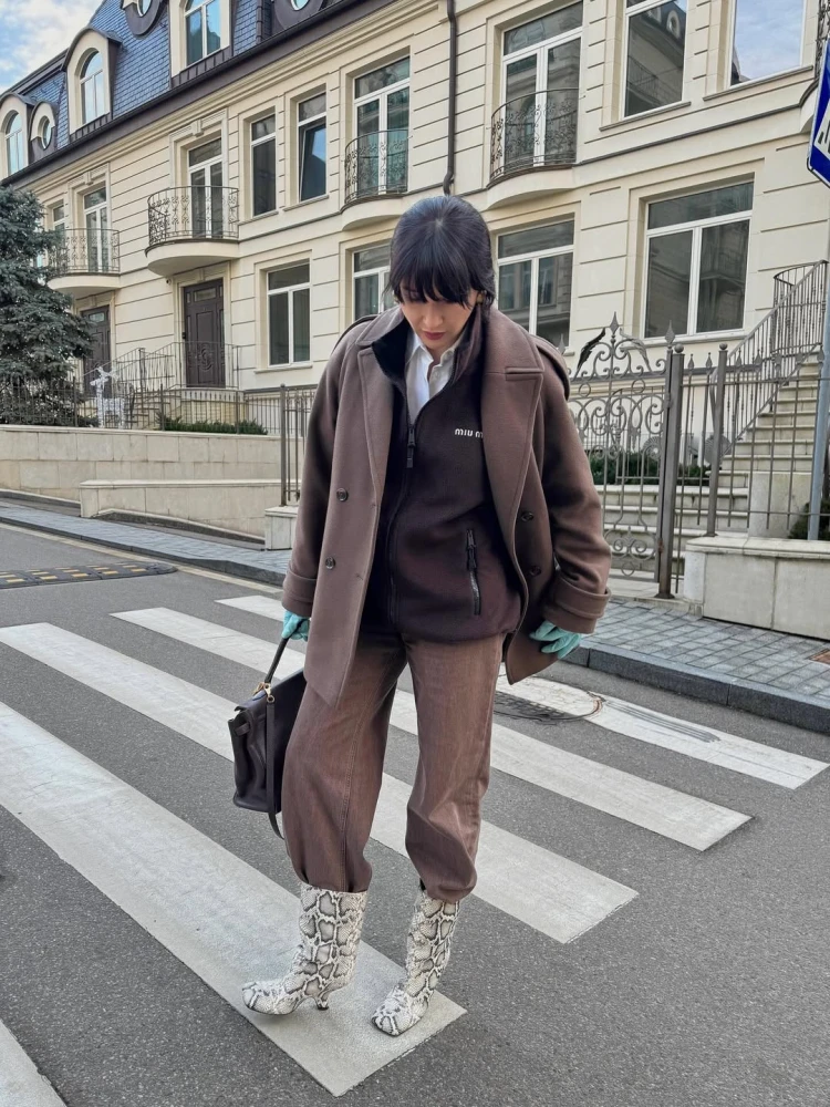 Пальто з шаллю і джинси