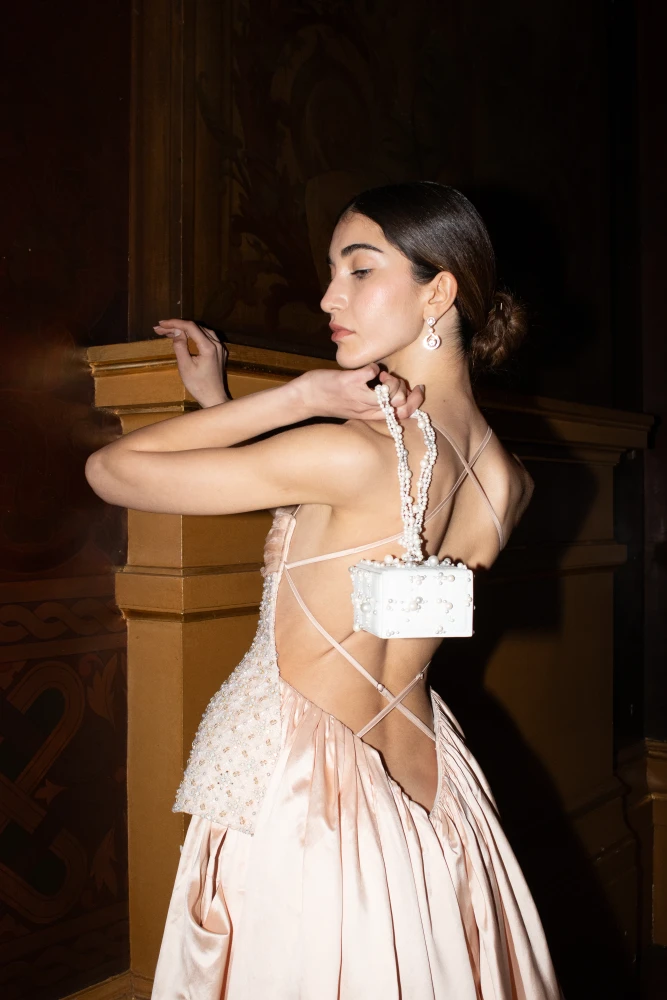 Lona Prist — лаконічна естетика аксесуарів haute couture. Для колекції були представлені знакові сумки Cube, виконані повністю вручну та інкрустовані перлами Swarovski й декоративними елементами, що продовжують художню лінію колекції YS Couture. Створення кожної сумки займає понад 80 годин ручної роботи.