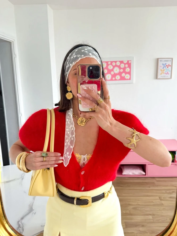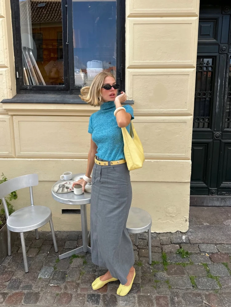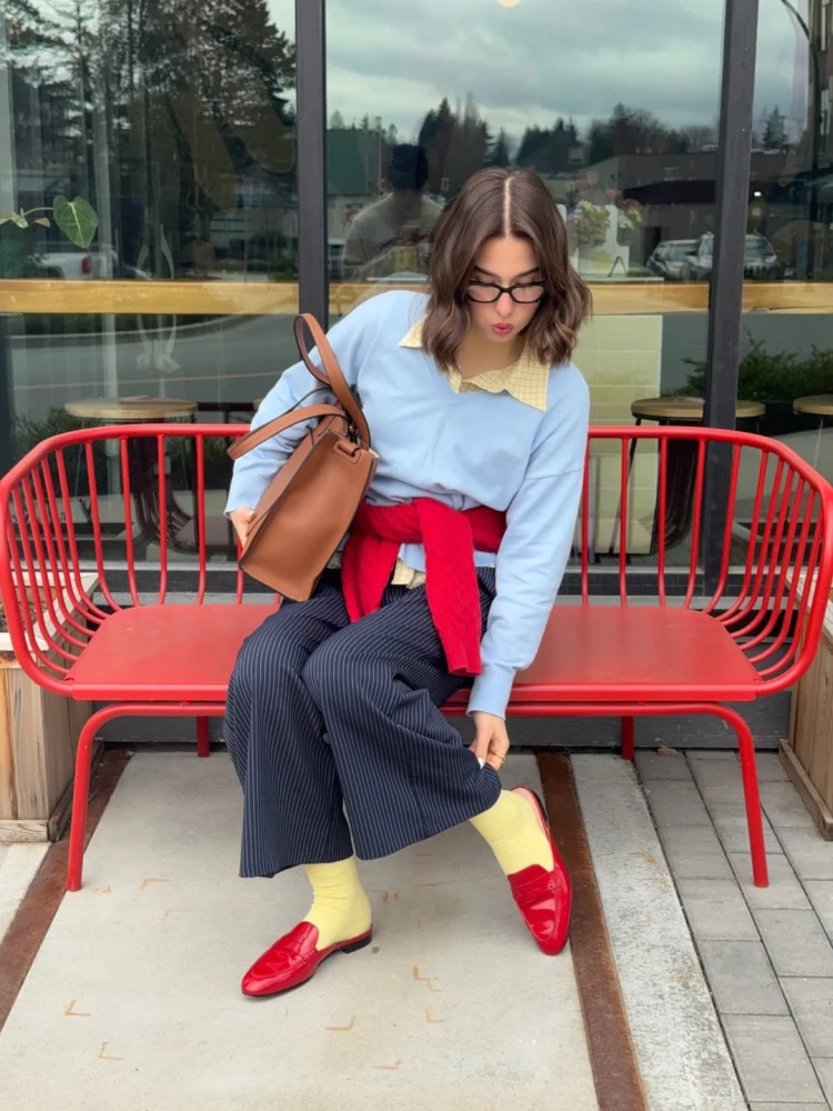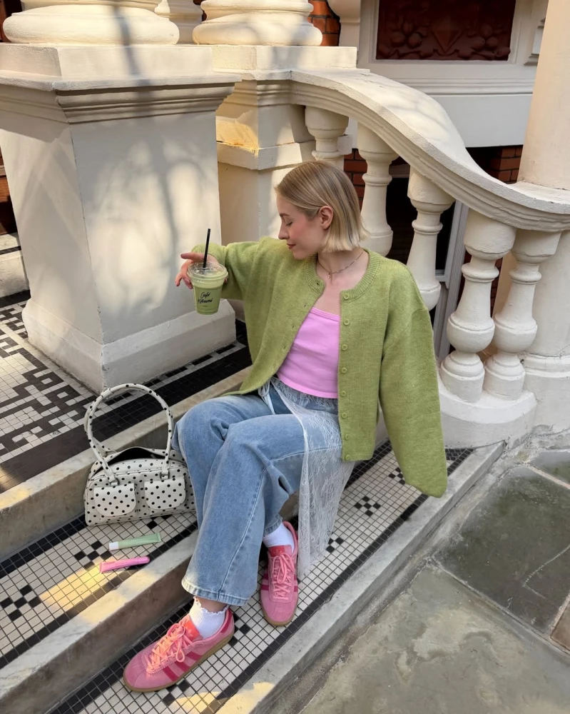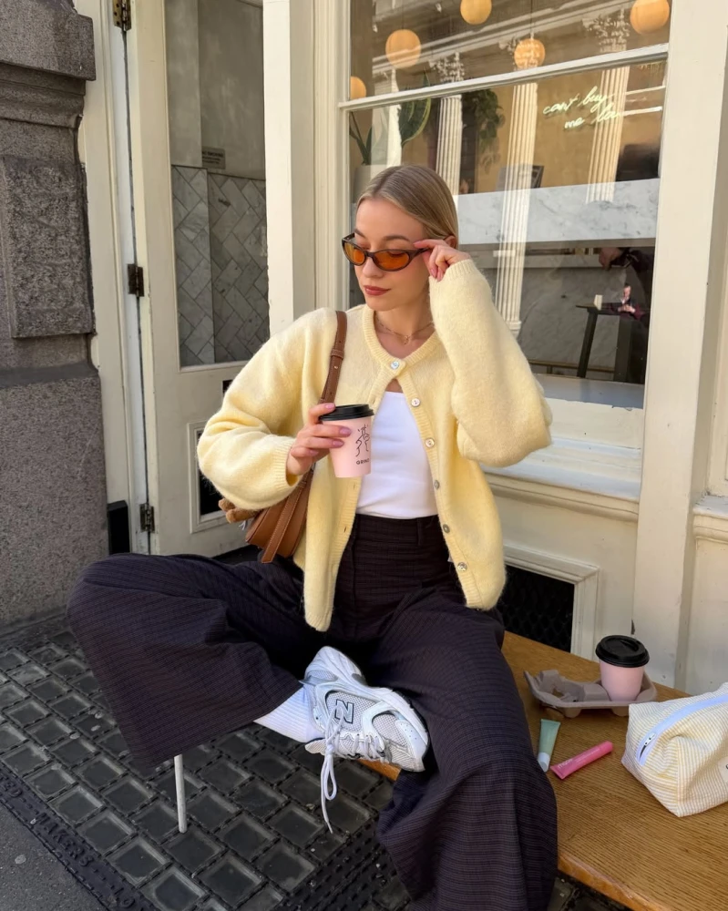 Жовтий колір, як і червоний, часто обирають як самостійну акцентну складову для образів. У комбінацію «джинси + базовий топ + чорне взуття» достатньо додати жовтий кардиган — і лук уже здаватиметься «дофаміновим». Також саме жовте взуття разом із жовтою сумочкою часто є ідеальним довершенням весняних нарядів дівчат з Instagram.
