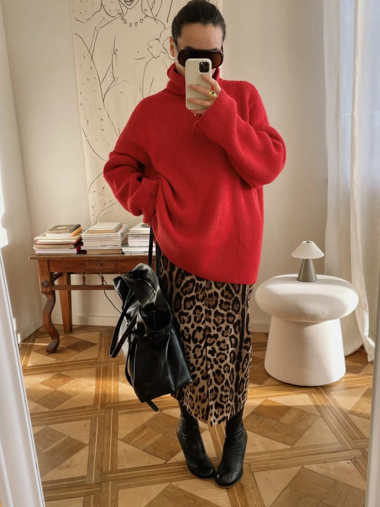 Розпочнемо з основи всіх основ для цього свята — червоних елементів. Найпростіше — одягнути мегаактуальний насичено-червоний светр, блузу чи піджак до свого звичного низу та доповнити цей дует аксесуарами у тон. Або ж обрати гарячий колір для комбінації з анімалістичним принтом, базовими джинсами чи для акценту на туфлях. Символічний принт, декор, вирізи та аплікації у формі сердечок будуть як ніколи доречні, особливо у грайливому аутфіті цього дня.