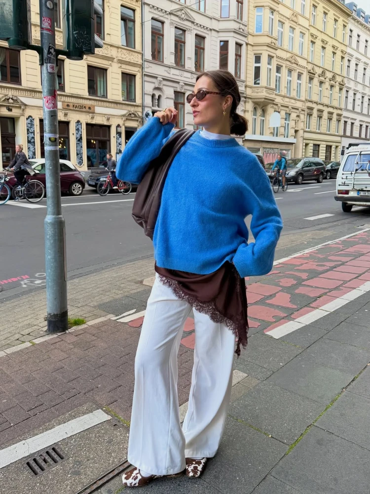 До більш нейтральних та все ж святкових дуетів належить поєднання білого і блакитного. Модниці додають до білого верхнього одягу аксесуари небесних відтінків, що разом нагадують ясний зимовий день зі свіжим пухким снігом, а також міксують блакитний трикотаж із трендовим білим денімом. Таке комбо завдяки світлим кольорам завжди матиме виразний вигляд, але не перевантажуватиме твої базові луки.