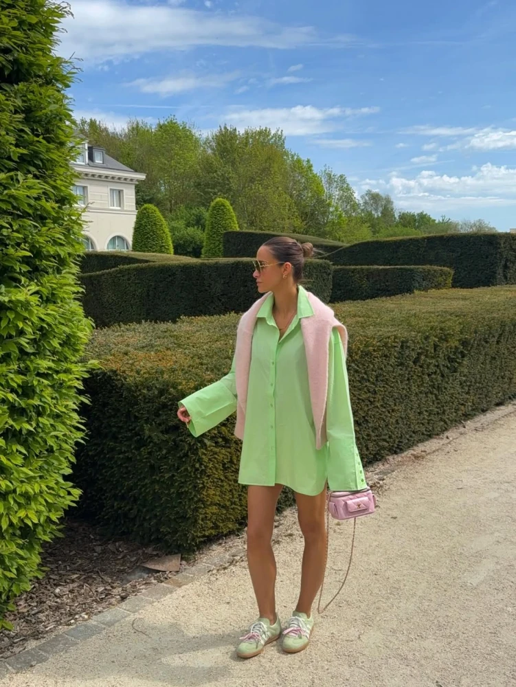 Також до топу найпопулярніших сорочок входять кольорові пастельні моделі. Вони ідеально передають естетику весни. Такі сорочки часто обирають для того, щоб без ризику додати барв у стримані чи мінімалістичні аутфіти. Окрім того, ніжні відтінки зеленого, жовтого та рожевого дуже зручно поєднувати з іншими пастельними тонами або робити центром у білих, сірих чи чорних total-образах.