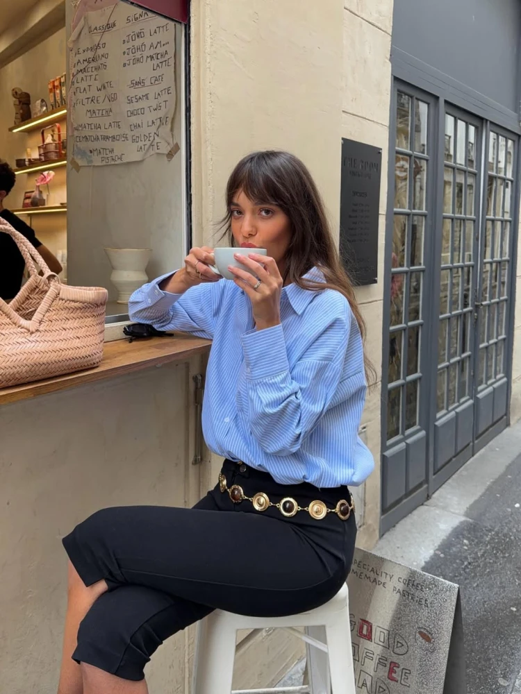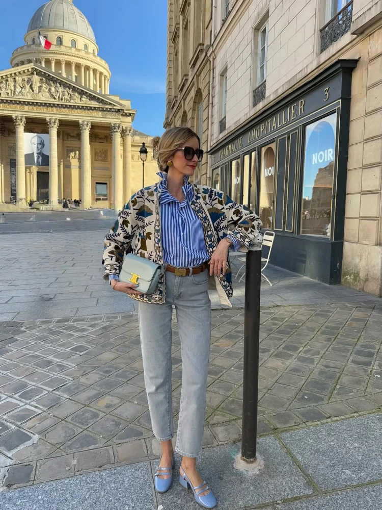 На хвилі популярності кольору icy blue та смужок строкаті світло-блакитні сорочки також стали вірусними. Нині саме їх дівчата з Instagram використовують і як основу для образів, і як легкий верхній шар, і як акцентну деталь. Вони пасують майже до будь-якого стилю, а завдяки холодному тону ще й візуально «освіжають» образи. А оскільки це — базовий елемент гардероба, фешіоніста не бояться комбінувати його з іншим принтованим або яскравим одягом, наприклад з барвистими кардиганами, леопардовими або зебровими куртками, акцентними аксесуарами.