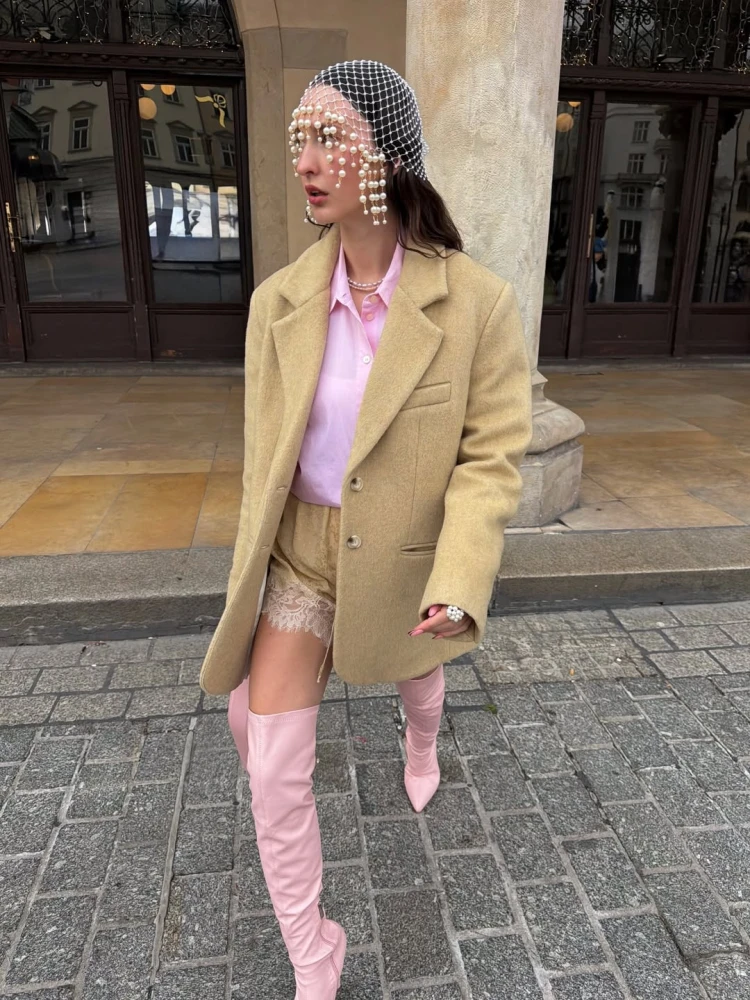 На хвилі ностальгії за стилем 2к16 у тренди повернулися комбінації ділового верху з контрастним низом. Нині streetstyle-модниці знову поєднують лосини та піджаки, а також атласні шорти та піджаки. І хоч такий перетин естетик уже не є чимось новим, «ностальгія за старими часами» повертає його в нашу стрічку Instagram.