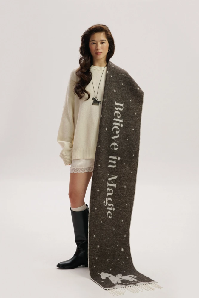 Фраза Believe in Magic стала лейтмотивом та прикрасою більшості позицій: піжам з капцями, лонгслівів, вовняних шкарпеток та... шарфів, які, на думку нашої редакції, претендують на звання найзатишнішого різдвяного подарунка.