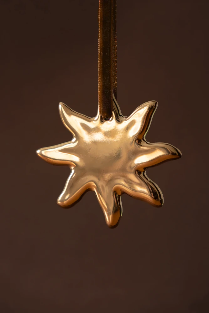 Кожен чарм вирізаний вручну з натурального дерева та вкритий делікатними шарами блискучої поталі, тож має свій унікальний характер і фактуру. Це невеликі, але дуже теплі акценти, що додають святкового настрою і можуть стати символічним подарунком у сезон зимових свят.