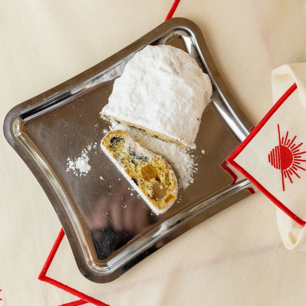 Різдвяний штолен, загорнутий у серветку з вишитим сонцем, від кондитерської «Середа»