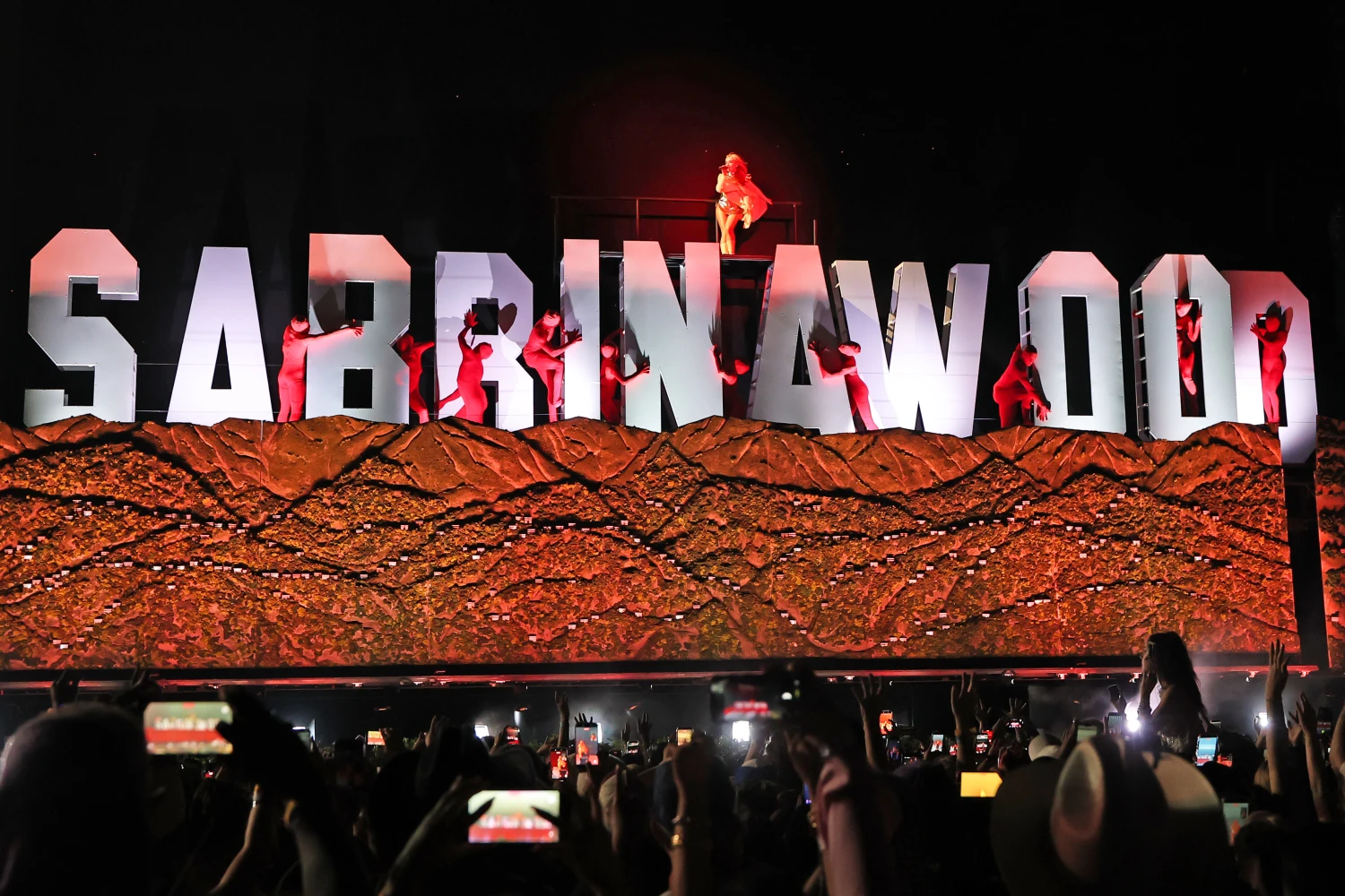Весь перформанс був просякнутий естетикою вінтажного Голлівуду, а Сабріна буквально перетворила сцену на живий кіномайданчик. Усе почалося з нуарної короткометражки, де її зупиняє коп у виконанні Сема Елліотта, а далі на глядачів чекав справжній зіркопад. Поки Сабріна виконувала хіти з нового альбому Man’s Best Friend, декорації змінювалися від студії звукозапису та дайв-бару до велетенської танцювальної студії після монологу легендарної Сьюзен Сарандон.