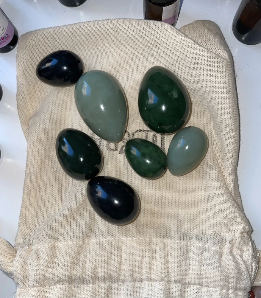 Також для укріплення м’язів тазового дна існують нефритові тренажери, відомі як вумбілдинг-яйця. Це натуральні камені у формі яєць, призначені для зміцнення м’язів тазового дна, підвищення чутливості та покращення кровообігу, які підбираються індивідуально. З приємних бонусів: завдяки тому що вони мають відчутну вагу і можуть перебувати в піхві тривалий час, адже виготовлені з гладенького каменю, їх використання також сприяє кращому відчуттю тіла загалом.