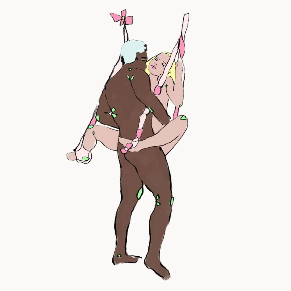 Як це працює: сядь у секс-гойдалку та зафіксуй стопи (якщо є петлі) або просто широко розведи ноги. Партнер обирає зручну позицію стоячи, а ти міцно тримайся за ремені.